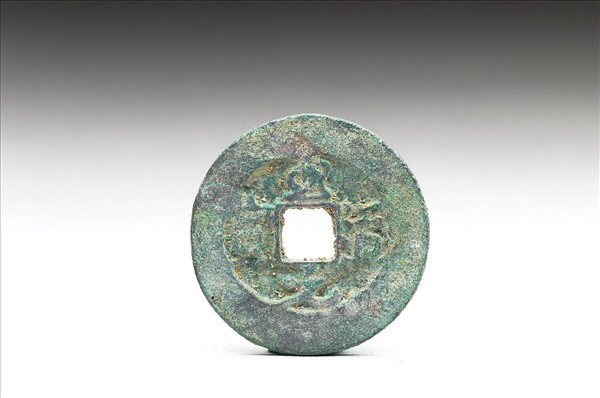 方孔圓錢,正面行書:「至道元寶」四字,背面無文,傳錢文為宋太宗手書。