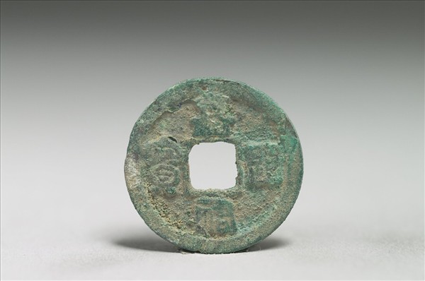 方孔圓錢,正面有篆書:「嘉祐通寶」四字,背面無文。