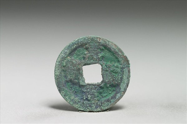 方孔圓錢,正面有篆書:「嘉祐元寶」四字,漫漶不清,背面無文。