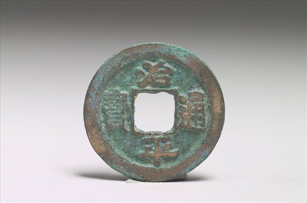 方孔圓錢,正面有隸書:「治平通寶」四字,背面無文。