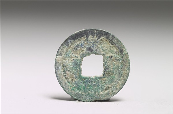 方孔圓錢,正面篆書「皇宋通寶」,漫漶不清,背面無文。