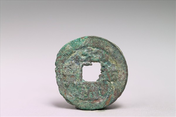 方孔圓錢「元祐通寶」有篆、行兩種字體,相傳篆體為司馬光所書,行體為蘇軾所書,又有銅、鐵兩種材質。此枚銅錢正面有行書「元祐通寶」四字,背面無文。