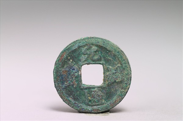 方孔圓錢「元祐通寶」有篆、行兩種字體,相傳篆體為司馬光所書,行體為蘇軾所書,又有銅、鐵兩種材質。此枚銅錢正面有行書「元祐通寶」四字,背面無文。