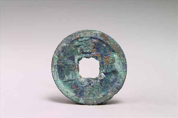 方孔圓錢,正面有小篆:「元祐通寶」四字,背面無文。