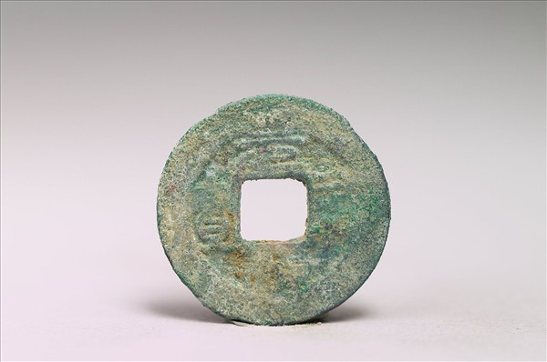 方孔圓錢,正面有小篆:「元祐通寶」四字,背面無文。