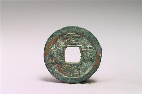 方孔圓錢,正面有小篆:「元祐通寶」四字,背面無文。