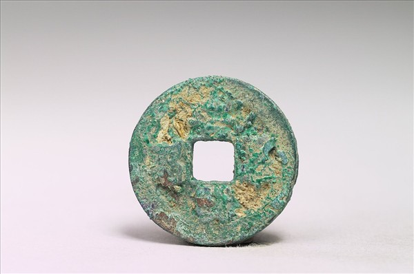 方孔圓錢,正面有四字,漫漶不清,背面無文。