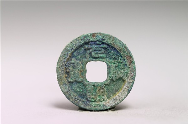方孔圓錢,正面有小篆:「元祐通寶」四字,背面無文。