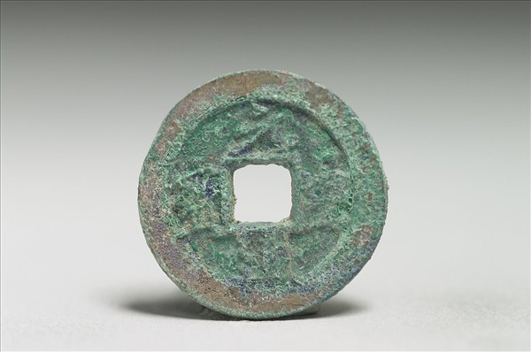 方孔圓錢,正面有行書:「元豐通寶」四字,背面無文。