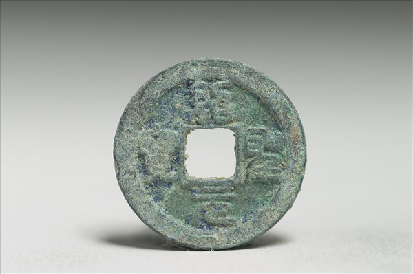 方孔圓錢,正面有小篆:「紹聖元寶」四字,背面無文。
