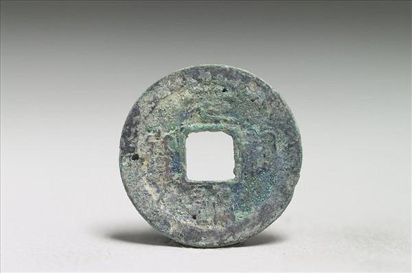 方孔圓錢,「元符通寶」有篆、楷、行三種字體,又有銅、鐵兩種材質。此枚銅錢正面有小篆「元符通寶」四字,背面無文。