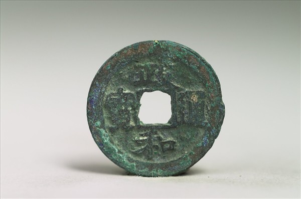 銅質,方孔圓錢,正面有楷書:「政和通寶」四字,背面無文。