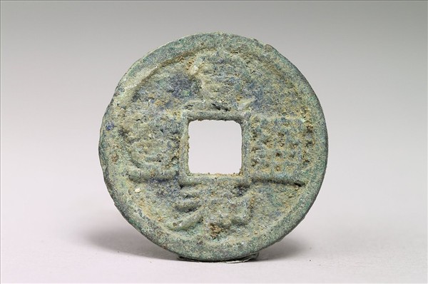 銅質。方孔圓錢,正面有楷書:「宣和通寶」四字,背面無文。