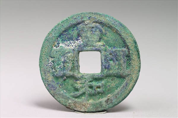 銅質。方孔圓錢,正面有楷書:「宣和通寶」四字,背面無文。