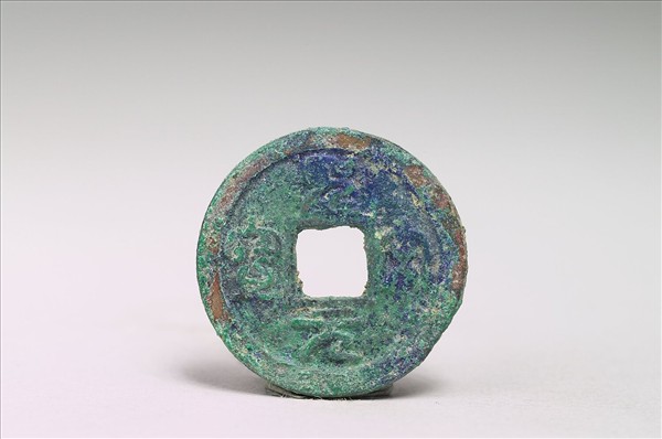 方孔圓錢,「聖宋元寶」為國號錢,有篆、隸、楷、行四種字體,又有銅、鐵兩種材質。此枚銅錢正面有篆書「聖宋元寶」四字,背面無文。