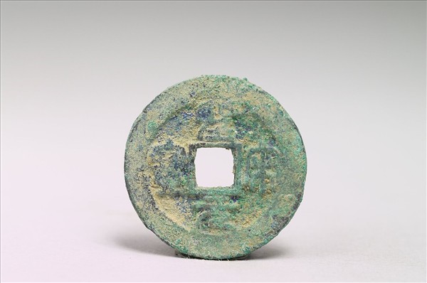 方孔圓錢,「聖宋元寶」為國號錢,有篆、隸、楷、行四種字體,又有銅、鐵兩種材質。此枚銅錢正面有篆書「聖宋元寶」四字,背面無文。