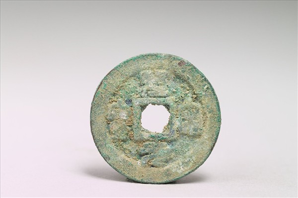 方孔圓錢,「聖宋元寶」為國號錢,有篆、隸、楷、行四種字體,又有銅、鐵兩種材質。此枚銅錢正面有篆書「聖宋元寶」四字,背面無文。