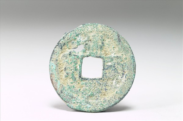 方孔圓錢,「建炎通寶」有篆、楷兩種字體,又有銅、鐵兩種材質。此枚銅錢正面有楷書「建炎通寶」四字,背面無文。