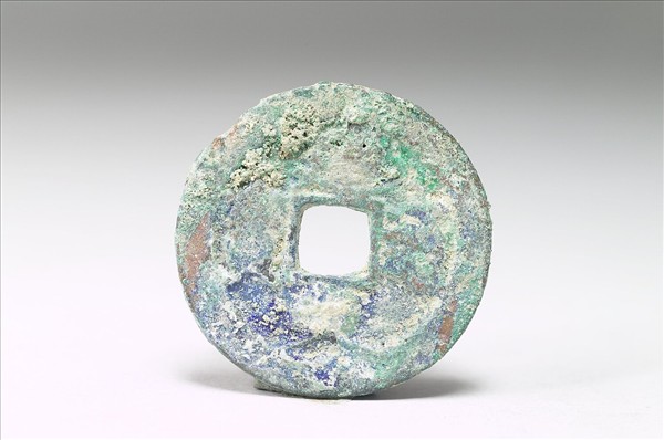 方孔圓錢,「建炎通寶」有篆、楷兩種字體,又有銅、鐵兩種材質。此枚銅錢正面有楷書「建炎通寶」四字,背面無文。