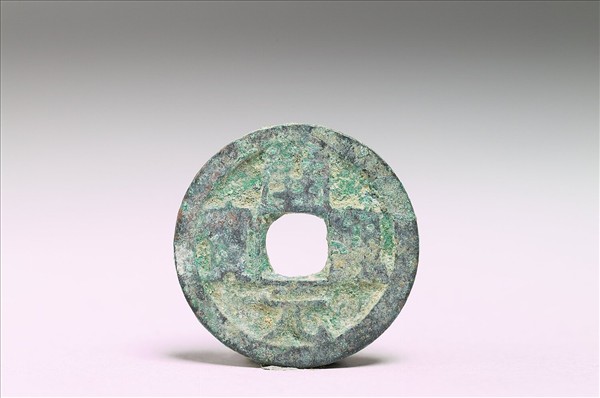 銅質。方孔圓錢,正面有楷書:「開元通寶」四字,背面無文。