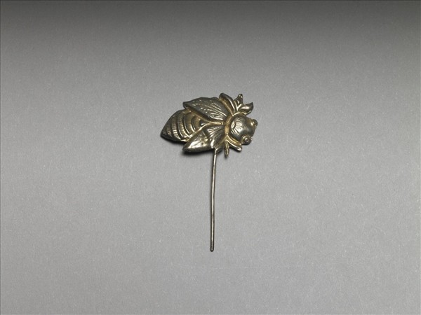 以敲花銀銅合金片作蜜蜂簪首,素圓挺。