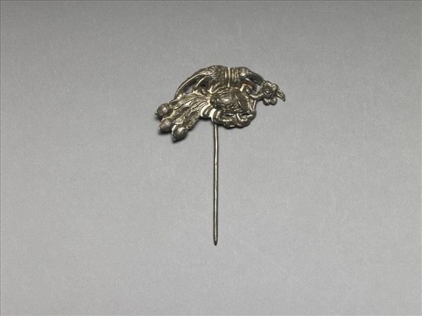鳳鳥紋簪首,以銀銅合金薄片錘鍱而成。素圓挺。