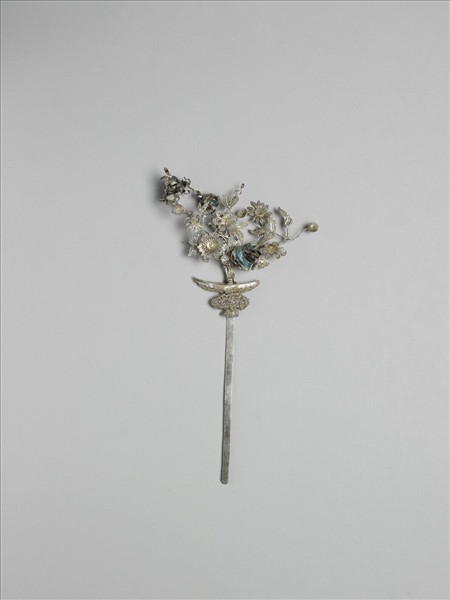 銀銅合金盆花簪