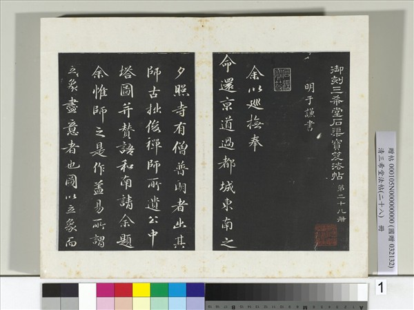清三希堂法帖(二十八) 冊 明于謙題公中塔圖贊