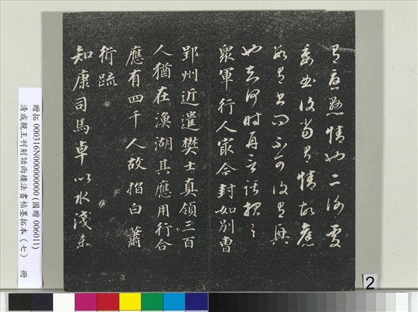 清成親王刊刻話雨樓法書帖墨拓本(七) 冊 成親王臨晉王操之婢書帖