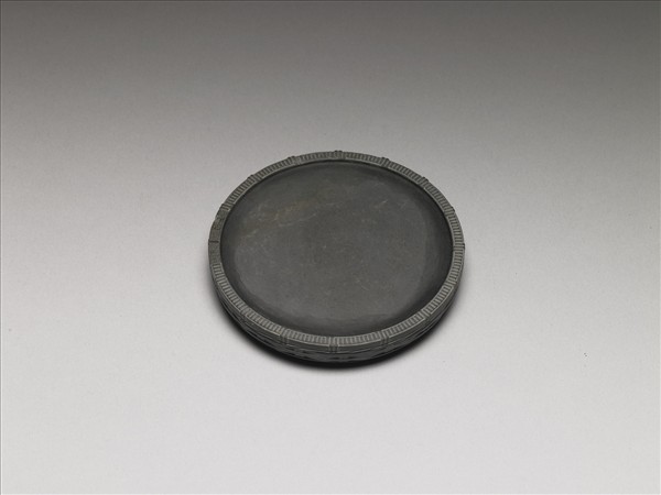 硯面周圍刻成圖案式竹節紋,並刻「吳門顧二娘製」篆文,背面為竹籮筐形式,淺浮雕表現出各種竹編的技法。