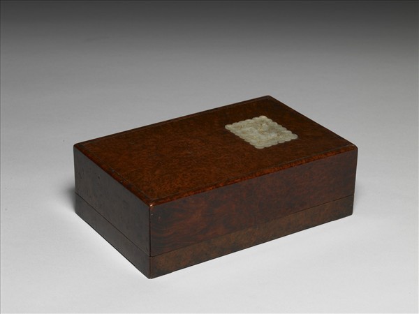 方形木盒,蓋深盒淺,子母口,外為棕色髹透明漆,顯現木質紋路,蓋面嵌一方形;內髹黑漆,蓋面內陰刻填白行書短文一篇,說明此硯由來,盒內底則刻隸體詩文一篇:「蕉葉白硯。清樂軒藏。『有卷者阿,白石鑿鑿,在水一方,其葉沃若,或耘或芓,于彼新田,烝我髦士,寔維豐年。』乙卯(咸豐五年,1855)冬月,集葩經句。奉 蓮尗夫子大人屬銘,受業楊浚敬鐫。」下鈐「江南王氏弟子」印。葩經為《詩經》別稱,本詩為楊浚集《詩經》佳句所作。楊浚(1830-1890),字雪滄,為福建省名藏書家,曾於同治八年(1869)遊台,編纂《淡水廳志》,留有一千五百餘首詩作。