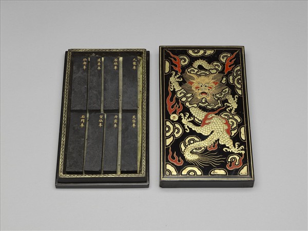(1)長11.8公分 寬2.1公分 厚1.1公分六件 (2)長8.8公分 寬1.7公分 厚1.1公分兩件 ;盒長21.6公分 寬12.1公分 高2.8公分