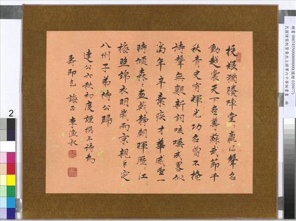 民國諸家祝賀黃杰上將軍六十華誕書畫 冊 李漁叔行楷書祝壽詩