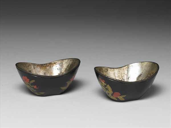 銀胎描漆元寶式碗(一對)