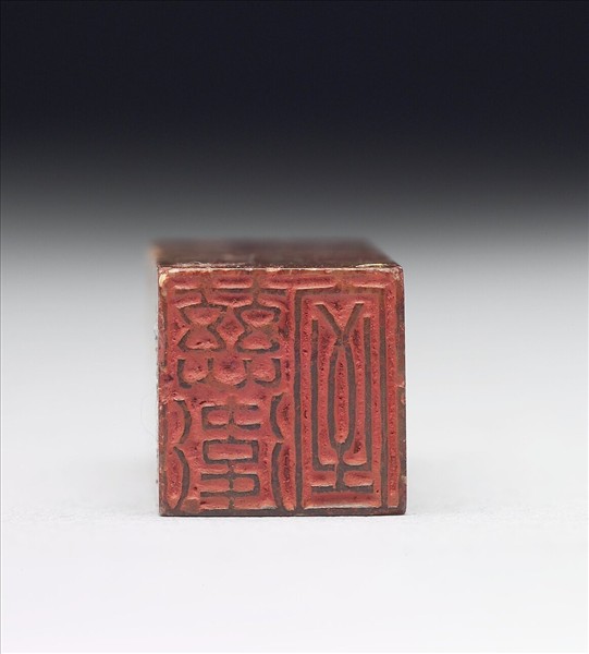 壽山石章,色紅白。長方體,印面正方。印面陽刻三字篆文:「慈衛室」,書體瘦直。慈衛室為譚延闓先生的書齋名。邊款:「一彝」。