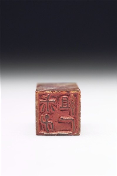 壽山石章,紅白色相間。長方體,印面正方。印面加框陽刻四字篆文:「叔子組厂」,組厂為譚延闓先生的字。
