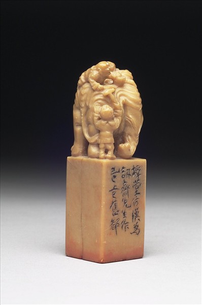 壽山石章,黃色。長方體,印面正方。印面陽刻「延闓私印」四字篆文。邊款:「桴堂仿漢。為訒齋先生作。己巳上巳。舊都。」桴堂是鍾剛中的字,由邊款來看,此印為鍾剛中所治。鈕立雕掃象圖,三童子恭敬清掃大象。與「茶陵譚氏」石章(贈玉164)成對。
