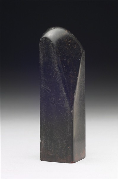 黑石章,黑色。長方體,頂作不規則形,印面正方。印面陰刻「譚延闓印」四字篆文,佈局工整。與「祖安不聿」黑石章(贈玉184)成一對。
