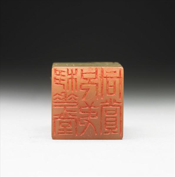 青田石章,黃綠色。長方體,印面正方。印面陰刻七字篆文:「栘華堂兄弟共賞」。邊款:「畏公瓶翁昆玉共賞印記。鈢齋作。」瓶翁是譚延闓五弟譚澤闓的號。此印為印人李尹桑所治。瓦鈕,鈕刻飾仿古龍紋。與十七方印(贈玉206-223)同儲於一木盒。