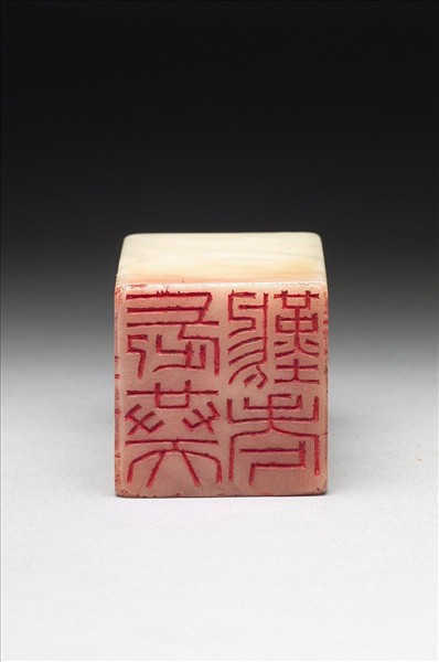 壽山石印,印面方正,半透明乳白色。印面陰刻五字篆文「長共天難老」,邊款「大千先生舊作,摘東坡菩薩蠻五字印,屬為勒跋,草草塗雅,其能免續貂之誚。己亥四月趙鶴琴識」。