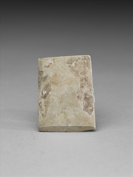 灰色。對稱梯形,小型,器體扁平,四邊切割整齊,背面平整,惟留多處表面崩傷,正面出現落階,有段,聯部(上身)與用部(下身)區分尚稱明顯,器體表面拋磨光滑;聯部面平整略鼓,惟留一些淺的打剝痕,並沾附泥土,聯部頂面平整;平刃略斜,偏鋒,刃緣有細傷。