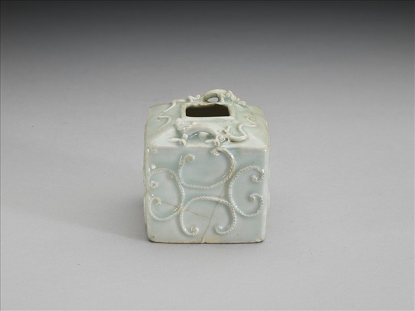 青白瓷連珠雲紋蟠螭小方罐