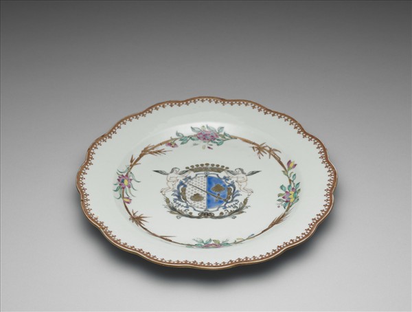 粉彩描金紋章紋花式盤