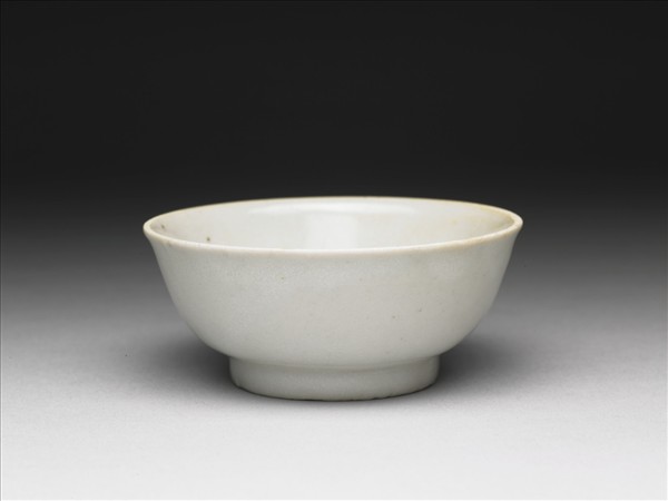碗形,圈足。淡黃色胎。全器施單色釉白釉。產自福建德化窯,該窯當時生產大量的外銷瓷。為泰興號出水作品。