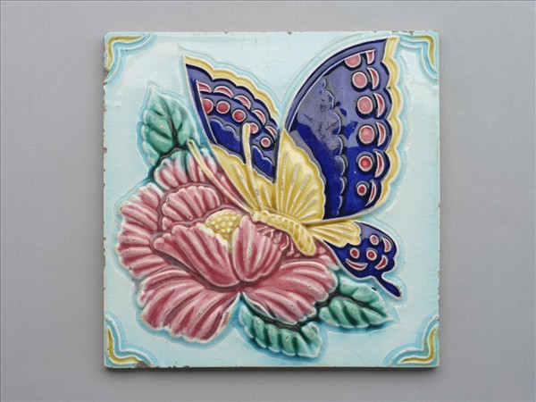 二十世紀上半葉日本花蝶圖瓷磚