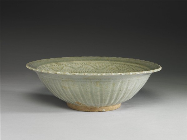 泰國 十五世紀 青瓷劃花花口折沿盤