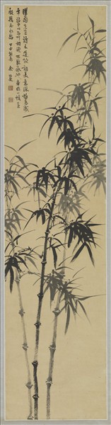 余紹宋(西元一八八二-一九四九年),浙江龍游人。號越園,別署寒柯。書畫七代家傳,善寫木石松竹,間作山水。喜用焦墨,筆法謹嚴中寓有瀟灑之致。生平自稱字第一,竹次之。能詩,精鑒賞,富收藏。   墨竹三株,挺拔向上。竹幹勁挺有力,竹葉紛繁而不亂,墨色層次井然,富有文人寫竹之雅韻。   本幅為孫多慈女士捐贈。
