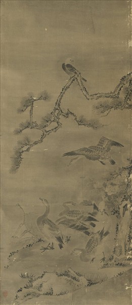 無款花鳥屏風六幅 單片 芙蓉群雁