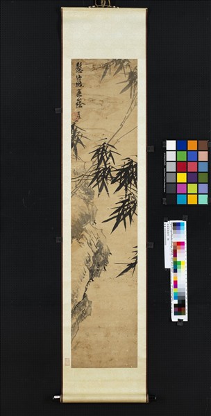 謝琯樵(西元一八一一-一八六四年)本名穎蘇,福建詔安人。咸豐七年至十年(一八五七-一八六○)居留台灣,先後執教於台南磚仔橋,台北板橋林家。謝氏詩書畫皆擅長,對於台灣畫壇頗有影響。畫竹葉以「 」字為主要結組,把竹葉當作一種符號來組成,畫的是心中之竹而非眼中之竹。畫起竹葉、竹幹、竹枝,也就猶如寫書法一般運筆,一橫一豎,一撇一捺,挺勁銳利的筆劃,是以書法來作畫。