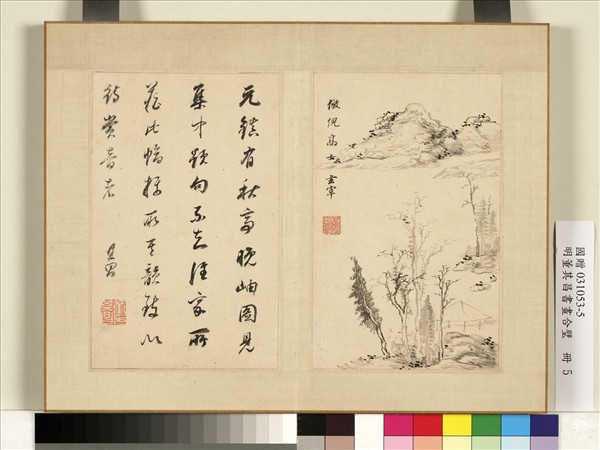 明董其昌書畫合璧 冊 仿倪儹山水
